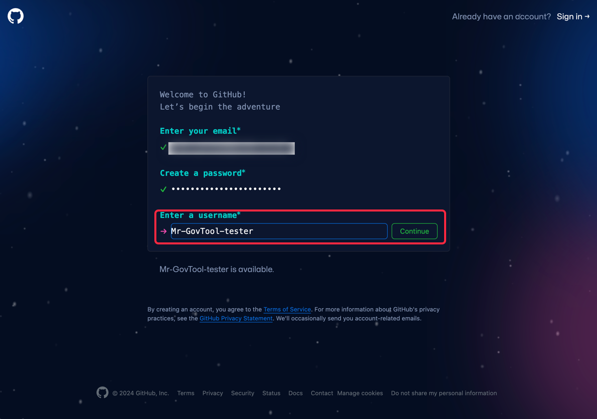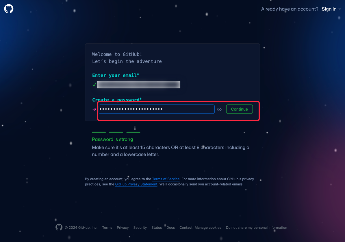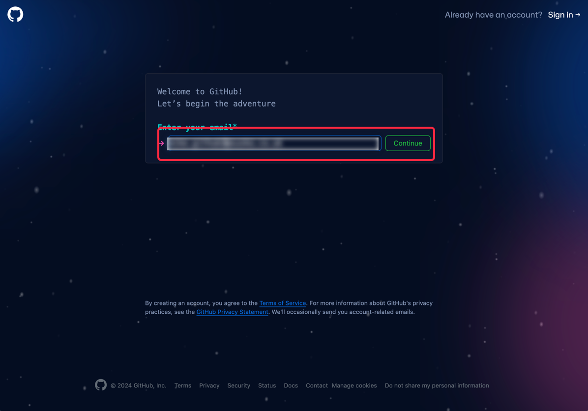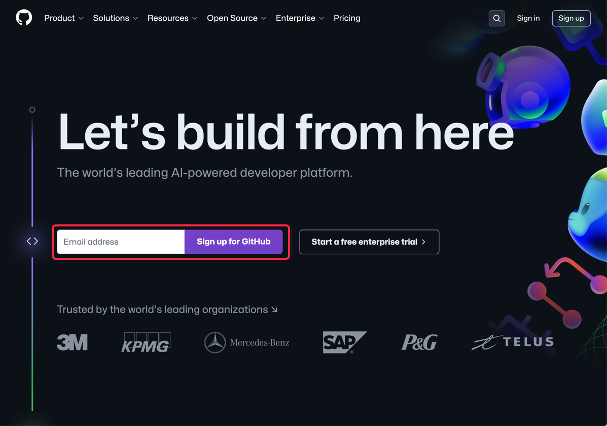 3. If you don't have a github account, you will need to create one. Simply enter your email address and click "Sign up for GitHub.<br>